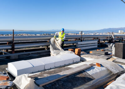 Soluzioni di retrofit in partnership per raggiungere l’obiettivo | Rinforzo di 6 travi in facciata. Rinforzo delle travi del balcone del penultimo piano. Rinforzo travetti solaio di copertura. |