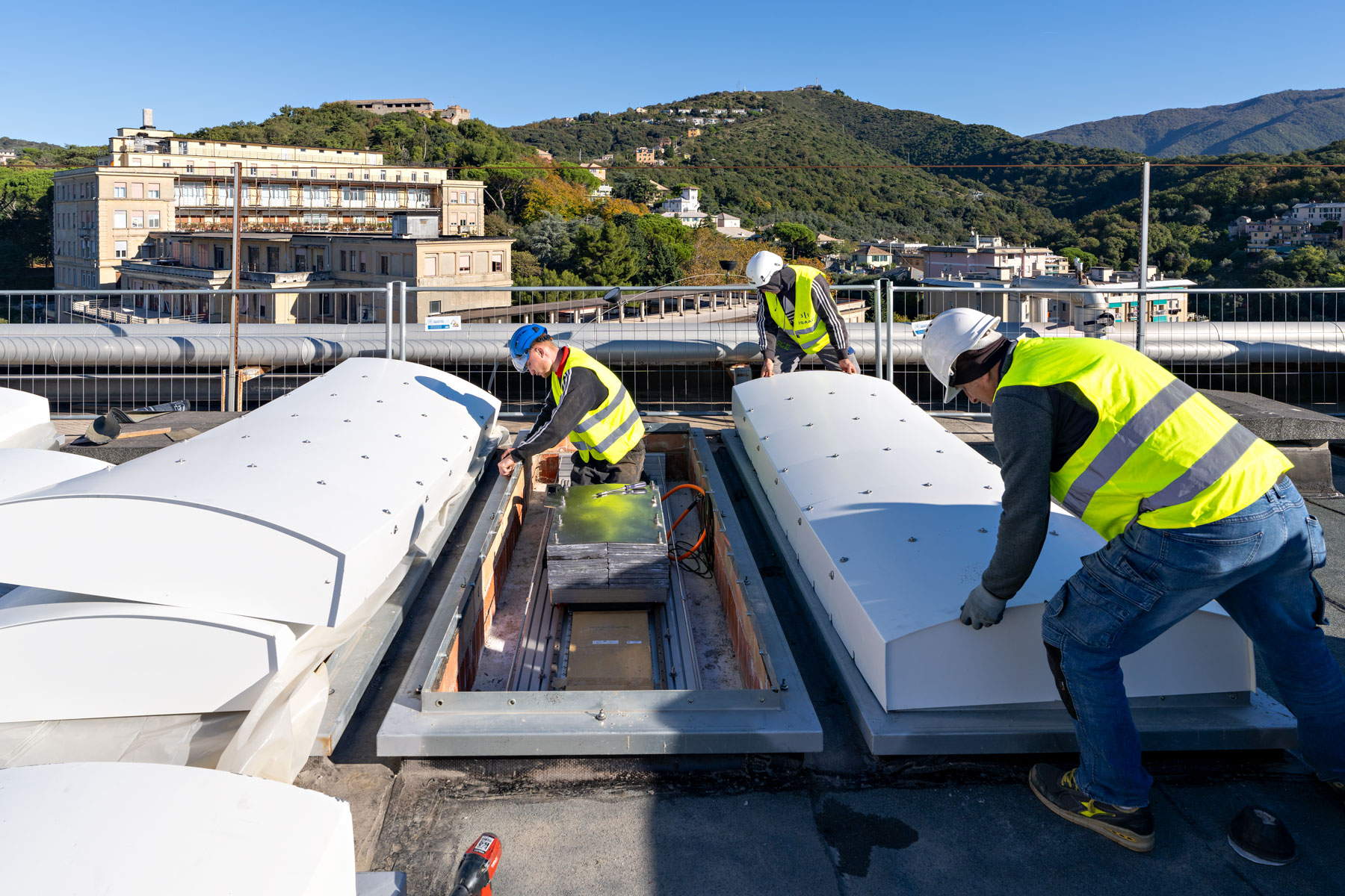 Perché ISAAC e in che modo è stata vantaggiosa | ISAAC è stata selezionata a seguito di un’indagine di mercato europea come unica realtà in grado di offrire una tecnologia brevettata di smorzatori attivi (Active Mass Dampers, AMD) capace di coniugare sicurezza, rapidità e minimo impatto operativo. La soluzione AMD permette di ridurre le sollecitazioni sismiche agendo sulla risposta dinamica dell’edificio, senza la necessità di interventi invasivi sulle strutture portanti o di interrompere le attività sanitarie. Questa tecnologia, installata prevalentemente in copertura, ha consentito al Policlinico di mantenere in funzione reparti critici come neurochirurgia e stroke, dimezzando tempi e costi rispetto ai metodi tradizionali. La collaborazione tra i tecnici ISAAC e il team di progettazione ha inoltre permesso di calibrare i dispositivi sui modelli strutturali reali, ottenendo un intervento preciso, efficace e perfettamente integrato con le esigenze ospedaliere. |